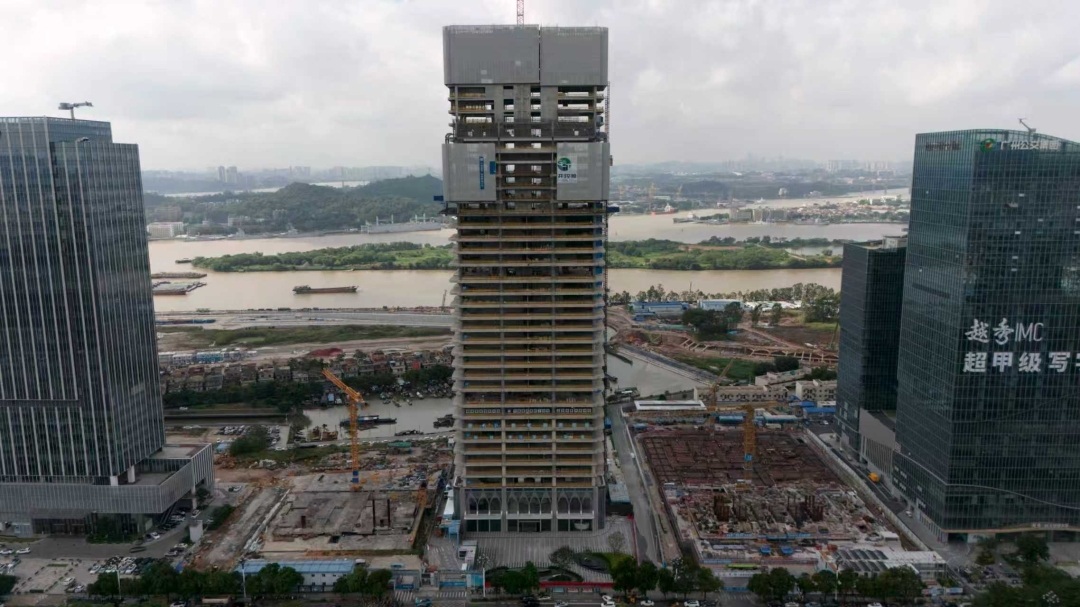 近日,位于鱼珠核心片区的粤开资管大厦主体结构圆满封顶,标志着项目建设正式迈入幕墙安装、装饰装修及机电安装施工阶段,为后续工程顺利推进奠定了坚实基础。