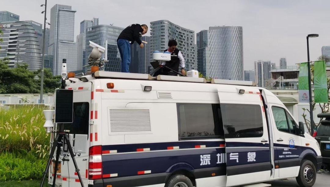11月18日上午,深圳市气象局应急保障车在欢乐港湾就位