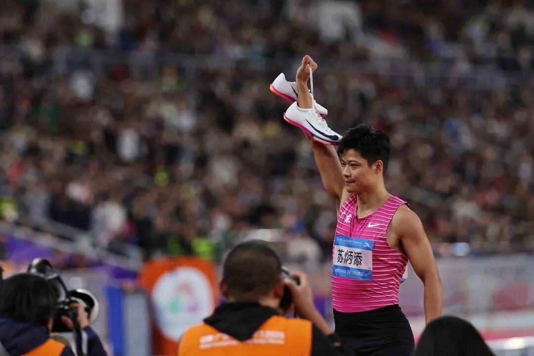 11月20日,十五运会田径比赛在广东奥体中心收官,其中最受瞩目的就是男子4×100米接力决赛,36岁的“亚洲飞人”苏炳添上演“最后一舞”,广东队以38秒71获得第四名,“苏神”遗憾地与奖牌擦肩而过,但完赛后苏炳添绕场一周向观众致意,43000多名观众齐唱《讲不出再见》。发表退役感言之后,苏炳添正式挂靴。
