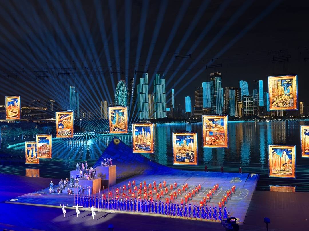 此外,鳌鱼同样是开幕式亮点,其形象源自岭南民俗,寓意“独占鳌头”“如鱼得水”。它首次以“空飘”形式亮相大型赛事开幕式,立即广受追捧。之后,它不仅在灯光节“返场”,也“游”进了闭幕式,多地也推出了以鳌鱼为主题的文旅项目,进一步激活地方文化资源。
