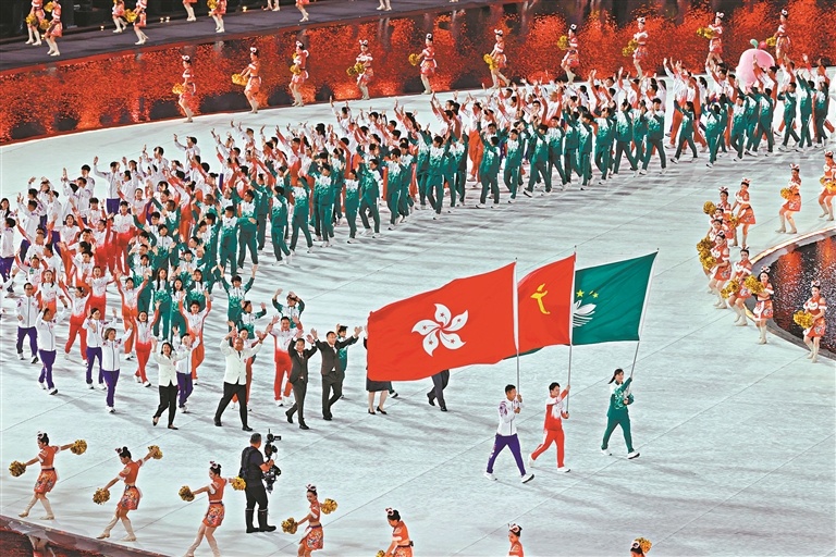 港澳赛区街头随处可见全运会主题灯饰与标语,市民观赛热情高涨,乒乓球、橄榄球、击剑等赛事太火爆,门票早早售罄,赛场活力四射,周边销售也异常火爆,全城沉浸在“欢乐全运海洋”的氛围中。港澳赛区以澎湃的“全运热浪”向世界展示城市魅力,呈现港澳加速融入大湾区、书写协同发展新篇章的生动场景。