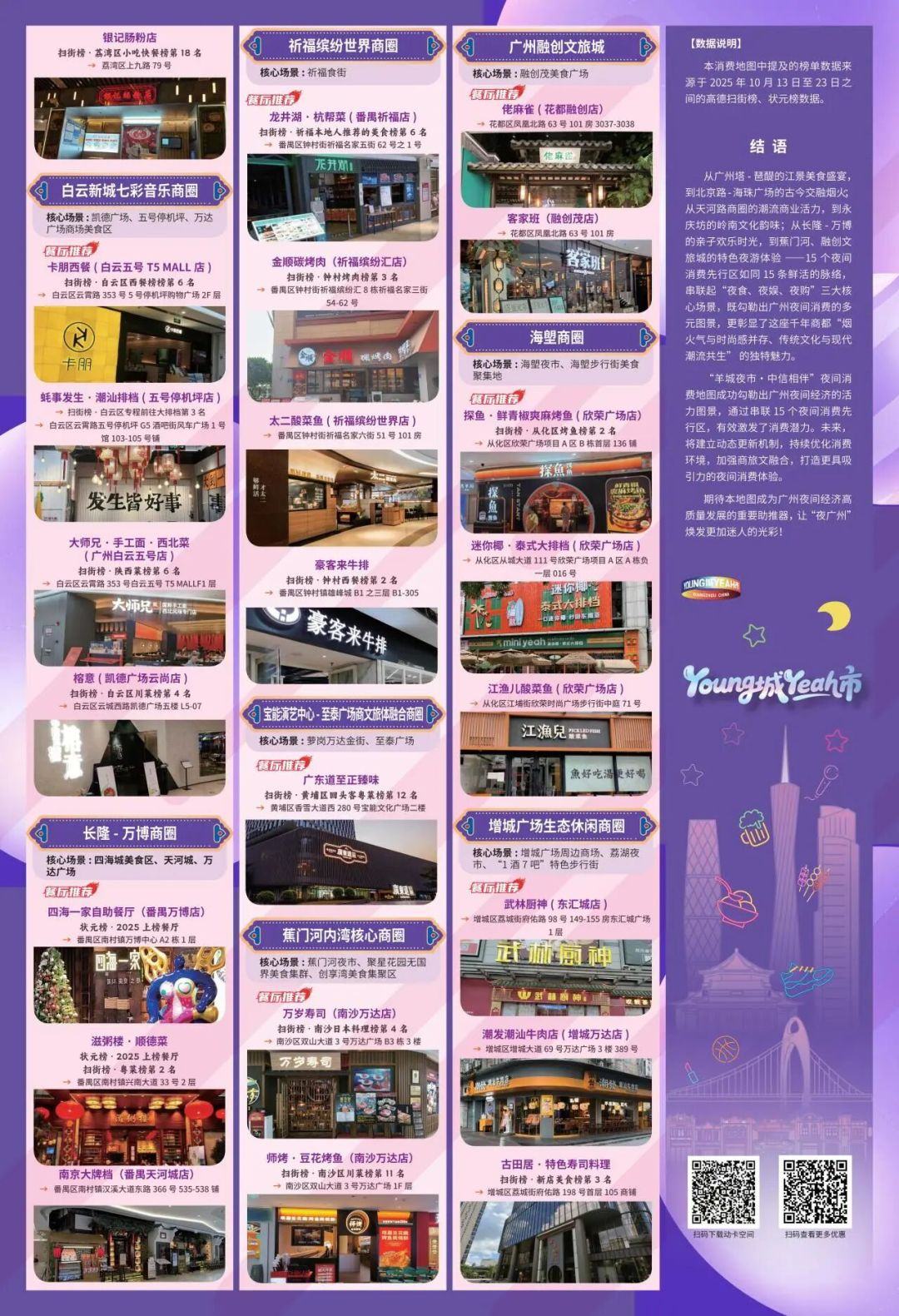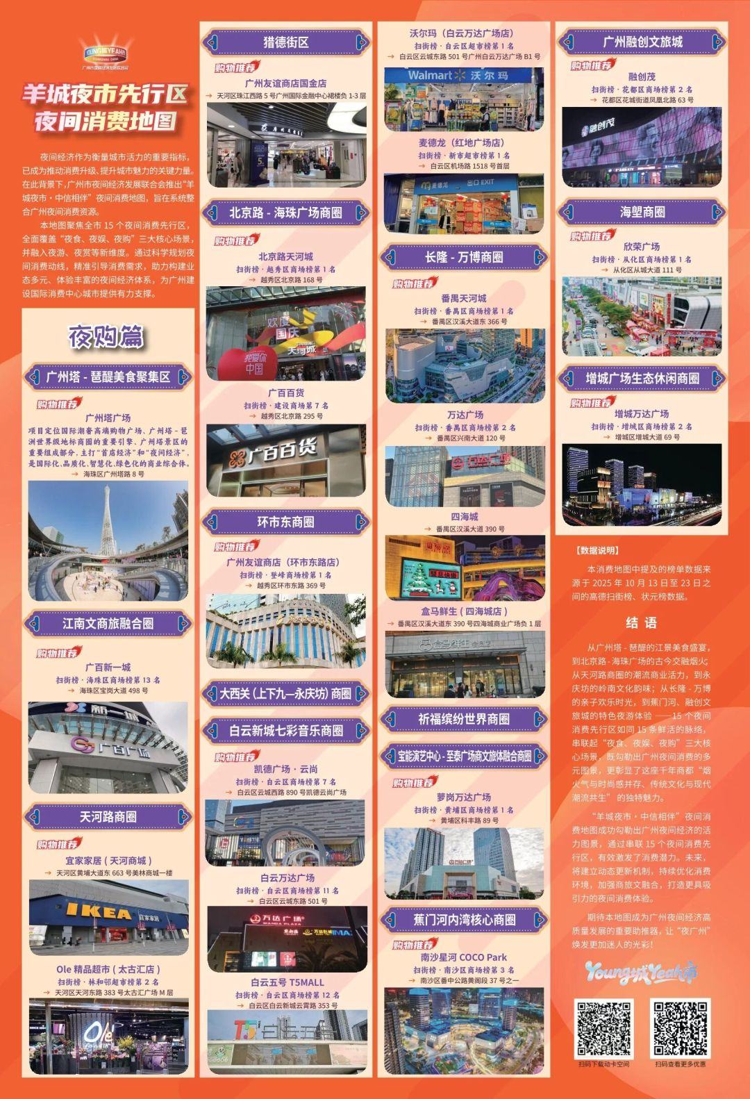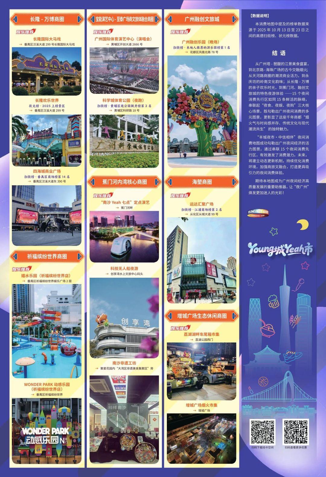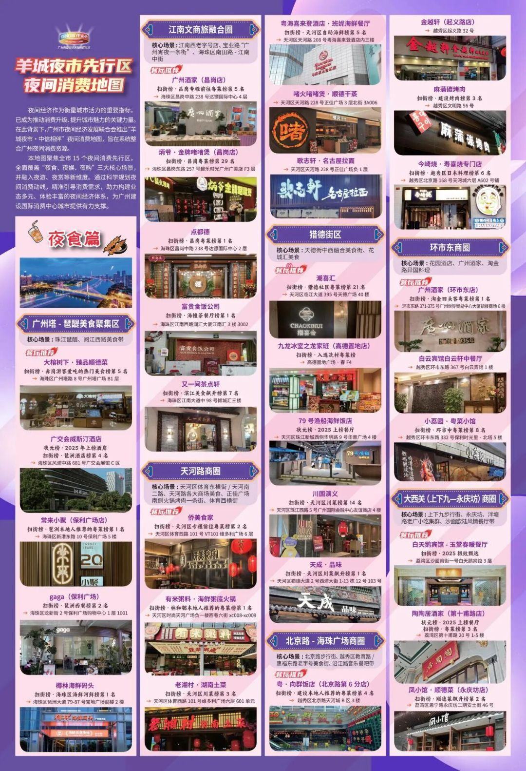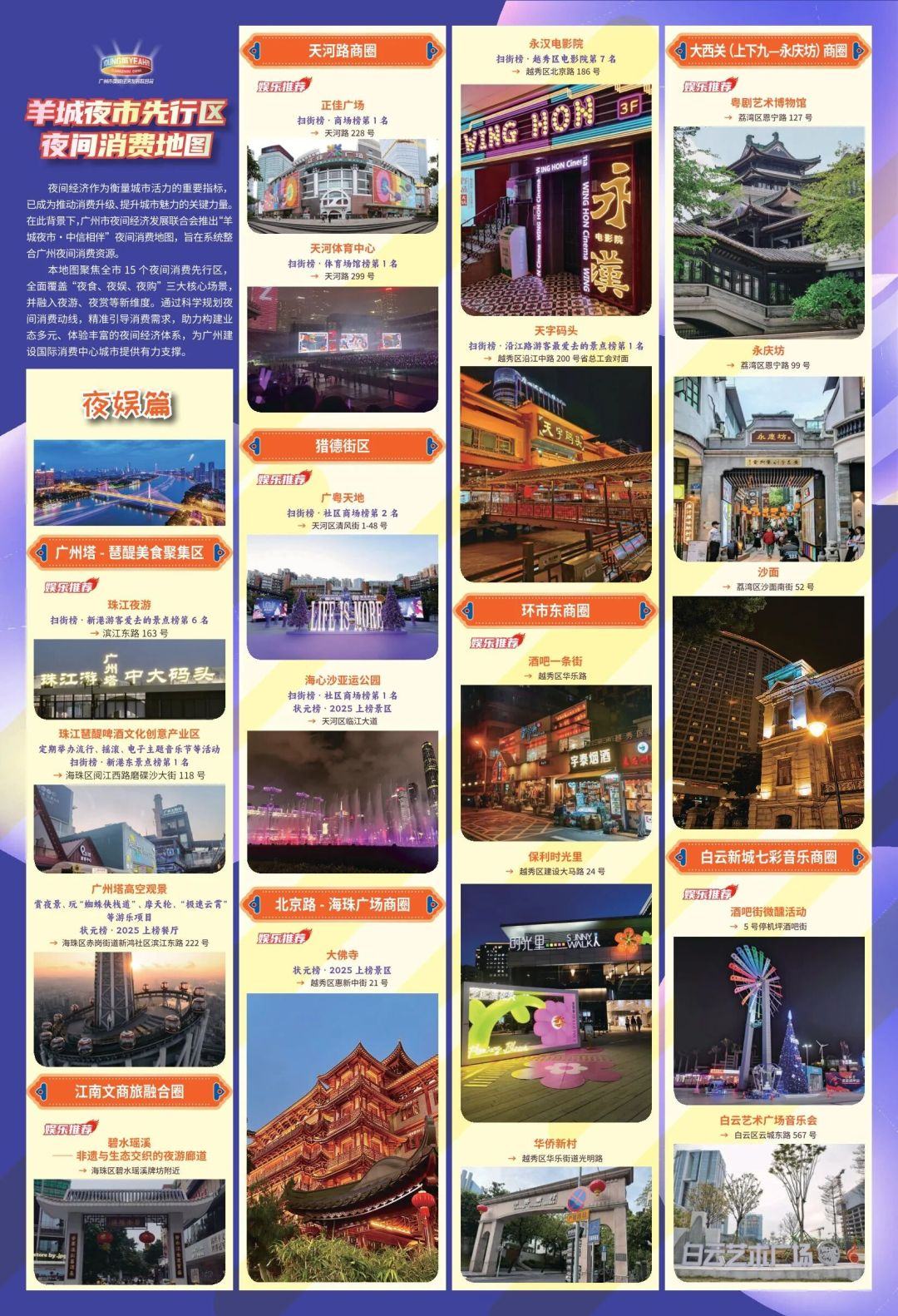 “羊城夜市・中信相伴”夜间消费地图聚焦15个夜间消费先行区,系统梳理区域内优质消费资源,形成覆盖全域、特色鲜明的夜间消费指引体系。