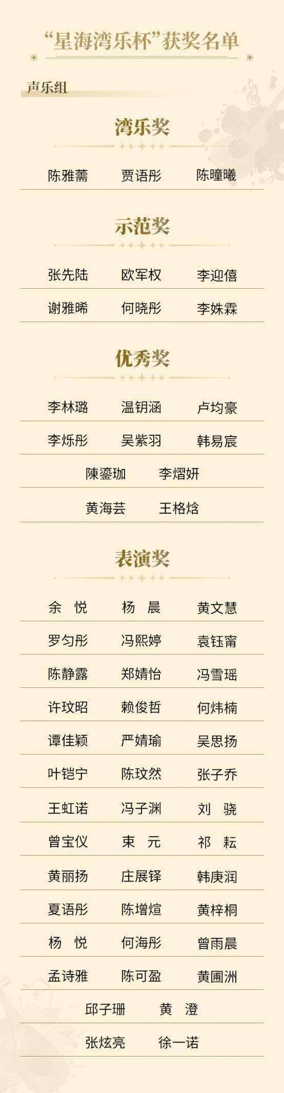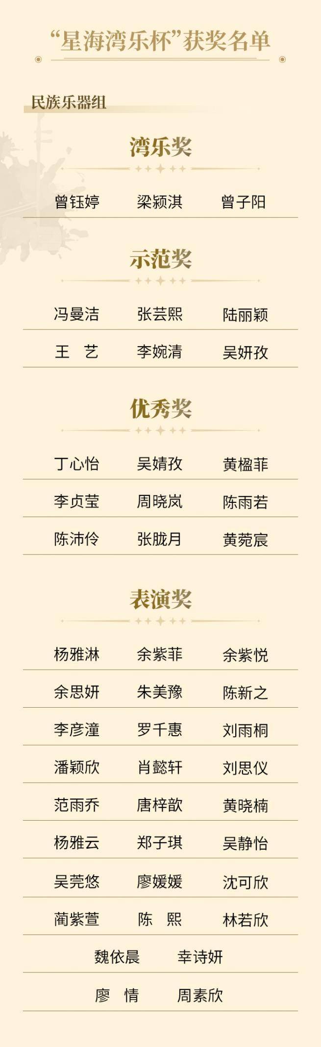 其中,荣获最高荣誉“湾乐奖”的选手将直接晋级,受邀参加于12月6日举行的总展演汇报演出,在更高规格的舞台上展现其艺术才华。