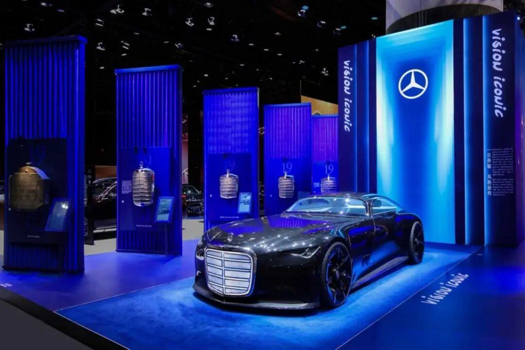除了性能科技,奔驰对美学的探索同样前沿。车展同台亮相的梅赛德斯-奔驰Vision Iconic概念车,则演绎了“复古与未来的双向奔赴”。