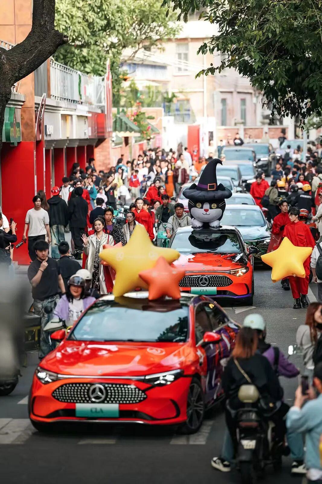 刚刚上市不久的全新梅赛德斯-奔驰纯电CLA成为绝对主角,标志性的“熔岩红”车身点亮百年老巷,花车巡游、试乘试驾同步上演,吸引了路过的街坊们举着手机拍不停。