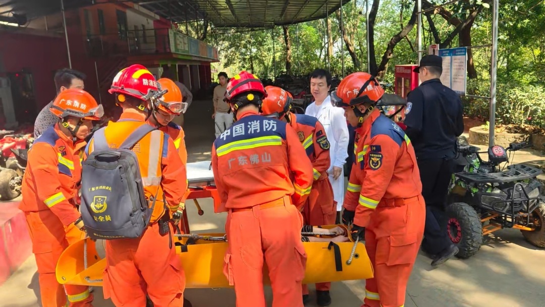 11月22日12时12分,佛山南海西樵山环山花海越野世界一处山坡上,一名群众因意外滑倒导致腿部骨折,被困山上无法移动。佛山消防接警后,立即调派西樵消防救援站2车10人赶赴现场救援。