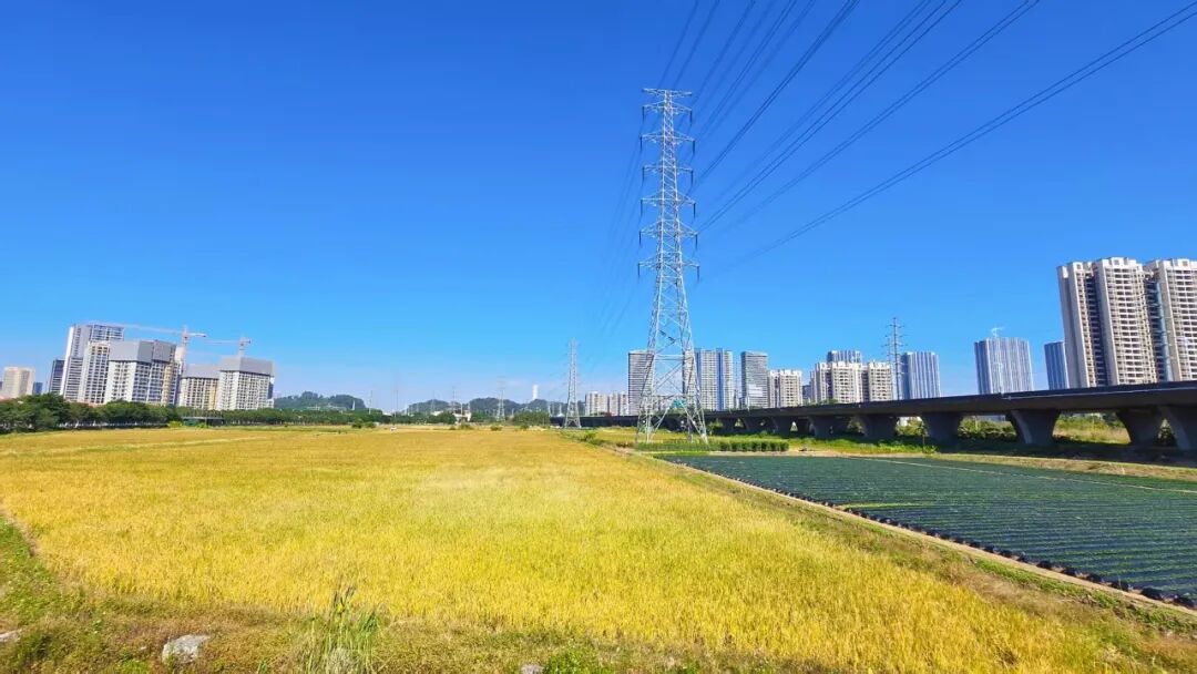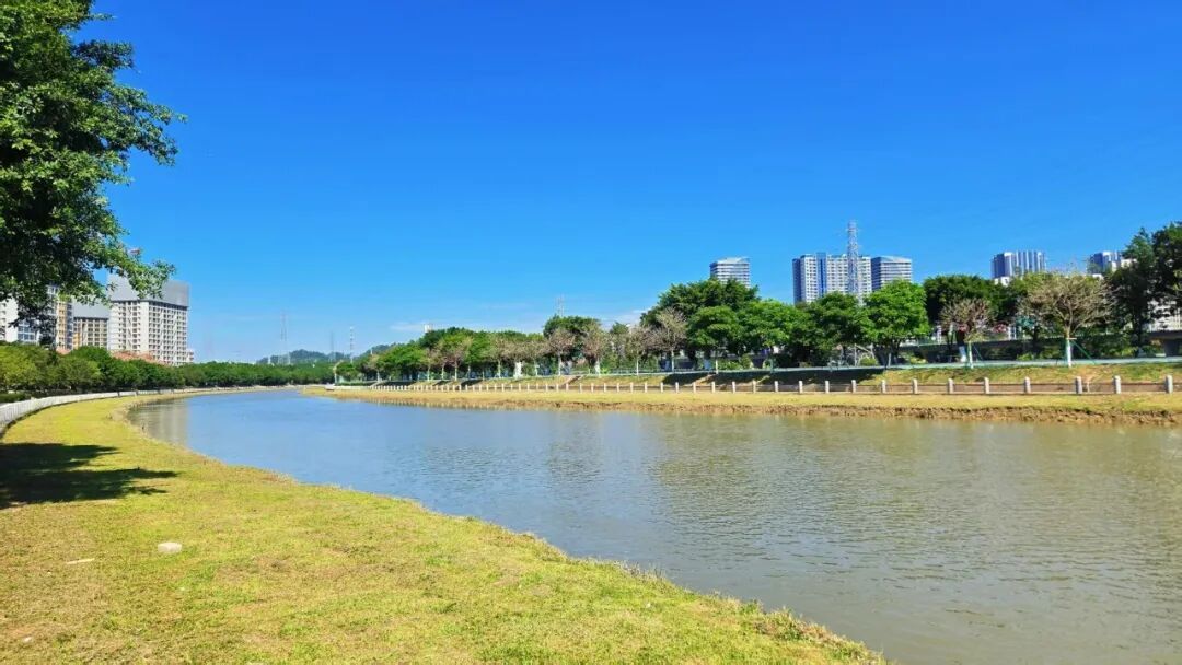 大禾田农业公园位于东新高速与屏山河之间,在稻田边上是一条万里碧道,许多街坊在此休闲散步,一步一景,清澈的河面泛起阵阵涟漪,河沿岸花草竞相生长,风光旖旎美如画。