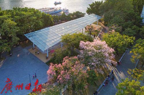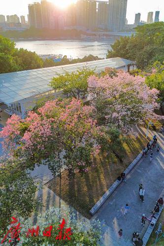 沿江东路的大沙头广场,几株异木棉在斜阳里花开正好。