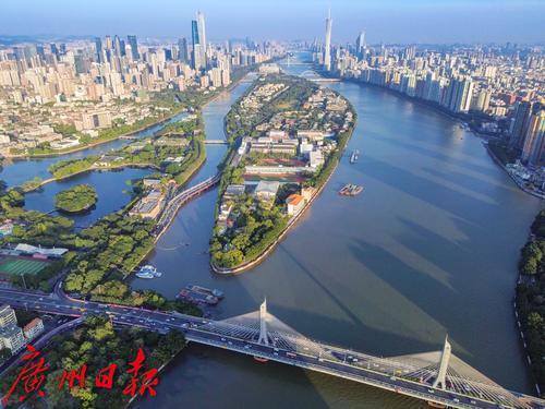 蓝天下的海印桥、二沙岛、东湖公园以及城市新中轴线。