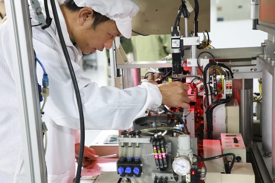 广西晶优电子科技有限公司内的工作人员在对产品进行查看