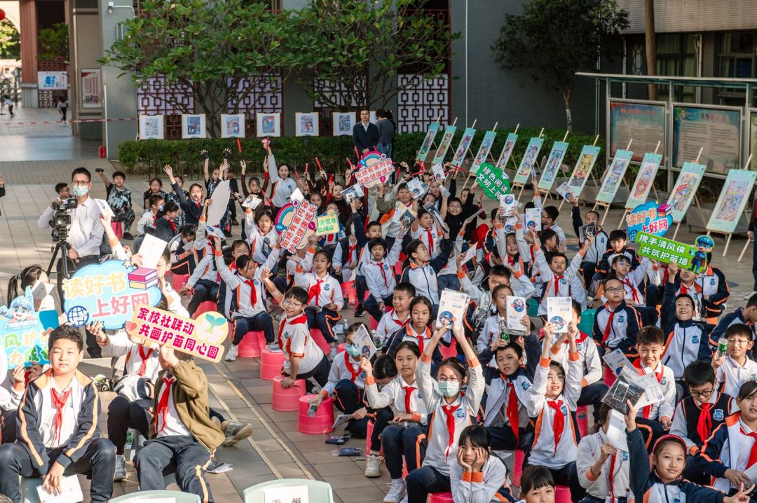 本次活动由广州市“扫黄打非”办公室、广州市版权保护中心指导,花都区“扫黄打非”办公室主办,信息时报社、微社区e家通、华南师范大学附属花都学校承办,区教育局、图书馆协办。市、区相关部门负责人,学校师生代表共同参与,打造了一场兼具教育性、趣味性与互动性的护苗行动,让“拒绝有害信息、坚持绿色阅读、文明安全上网”的理念在欢声笑语中浸润人心。