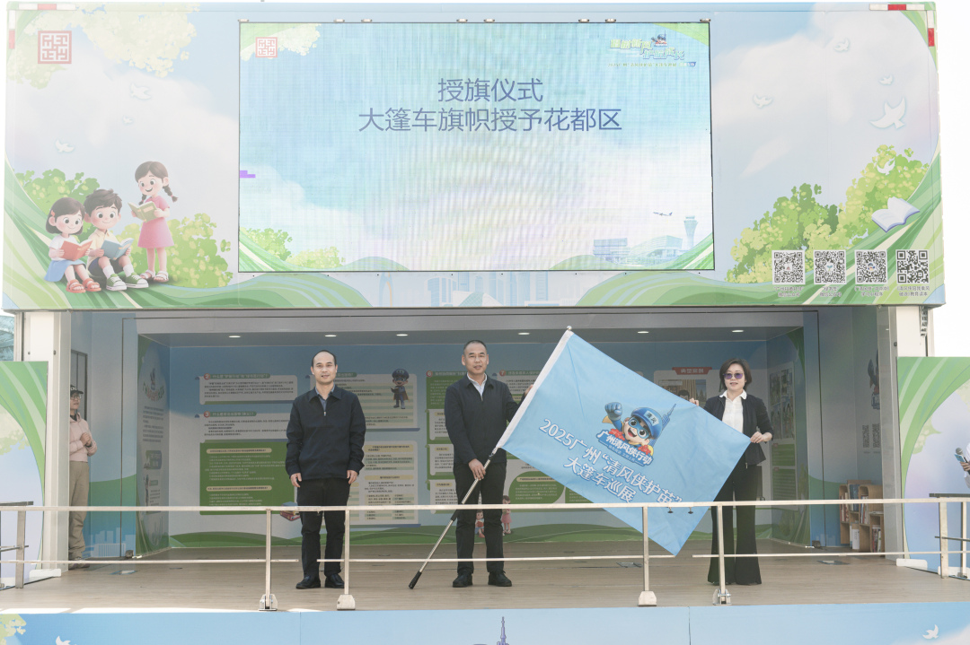活动现场,2025广州“清风侠护苗”大篷车旗帜传递至花都区“扫黄打非”办公室主要负责人手中,象征着正版文化与“护苗”理念扎根花都沃土,将以大篷车为流动载体,持续走进更多校园、社区、公共场所,让清朗之风浸润城市每个角落,让护苗行动覆盖更多青少年。