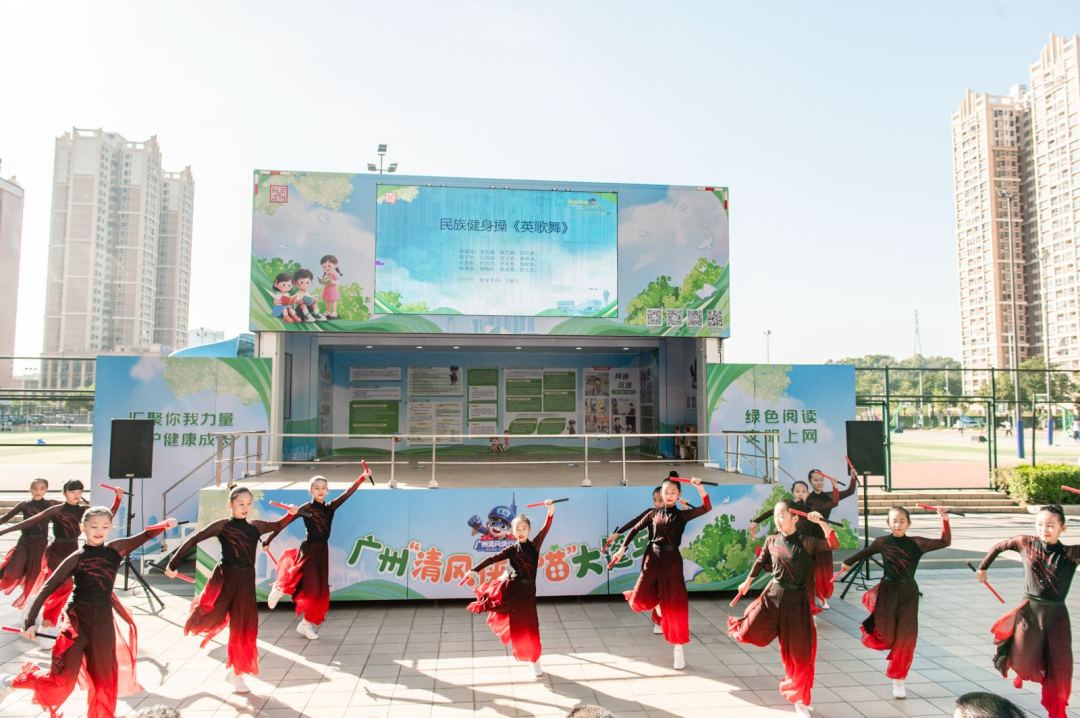 与此同时,一个个精心编排的文艺节目轮番登场,用鲜活表达传递护苗正能量。民族健身操《英歌舞》率先点燃氛围,将潮汕传统民间艺术与科学健身元素巧妙融合,动作舒展有力、节奏铿锵激昂,既保留了传统舞蹈的磅礴气势,又彰显了青少年的蓬勃活力,在力与美的碰撞中传递“各美其美,美美与共”的民族团结理念,让传统文化在校园绽放新彩。