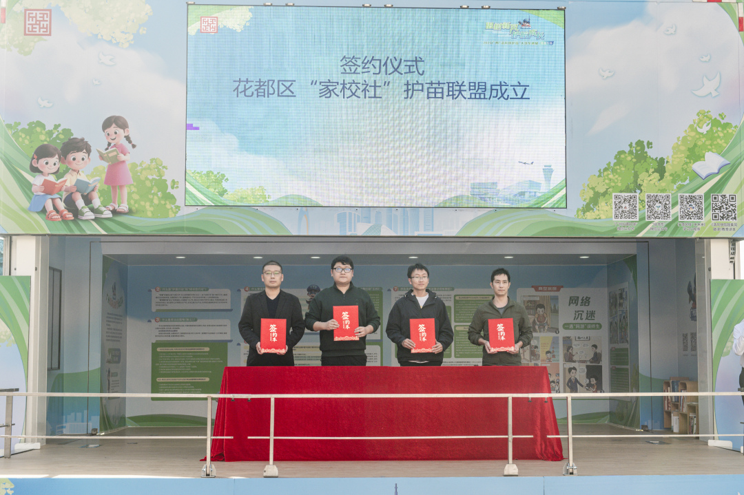 为构建家校社协同发力的护苗格局,活动现场举行“花都区护苗联盟”签约仪式。学校教师代表、家长代表、志愿者代表及“扫黄打非”工作人员共同上台,庄严签订护苗联盟协议,承诺严格践行“三不”准则:不购买传播有害出版物、不允许孩子接触不良网络内容、主动举报违法违规线索。这份沉甸甸的承诺,将家庭的关爱、学校的责任、社会的担当紧密联结,为青少年成长筑牢全方位、立体化的保护防线。