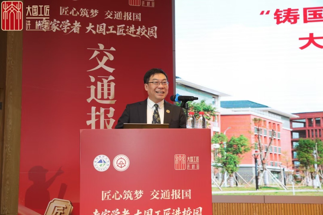11月25日下午,由交通运输部人事教育司指导、交通运输部职业资格中心、中国交通教育研究会主办的“专家学者、大国工匠进校园”活动在广东交通职业技术学院举办。在加快建设交通强国的今天,中国工程院外籍院士邓文中、中国工程院院士王景全、国家卓越工程师苏权科、全国劳动模范孔祥瑞、“全国青年岗位能手”蔡华文、广东交通职业技术学院副院长王劲松等业界翘楚齐聚一堂,以自身成长与一线实践共探适应新时代需求的交通人才培养,用他们的人生故事为青年学子点亮前行的灯。