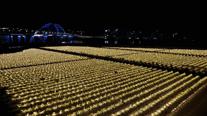 评论区除了“七不七轰隆果”(吃不吃火龙果的方言发音)的表情包,还有很多朋友晒出了自己拍的火龙果灯海——如梦似幻的点点灯光照亮旷野,一片宏大的灯光秀场之下,火龙果默默地开花结果。