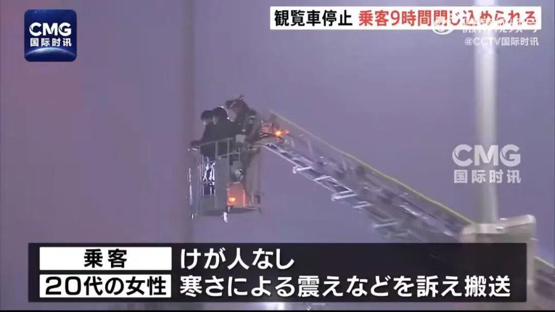 11月25日下午,日本大阪府吹田市内一商业设施内的摩天轮因遭到雷击出现动力故障,随后紧急停运,约20名乘客被困于轿厢内。