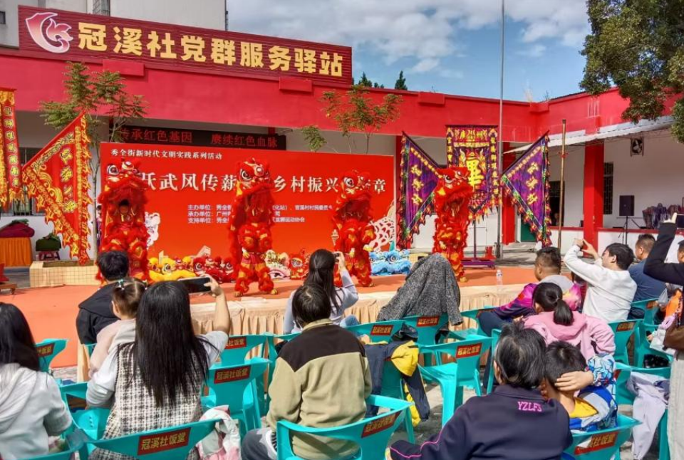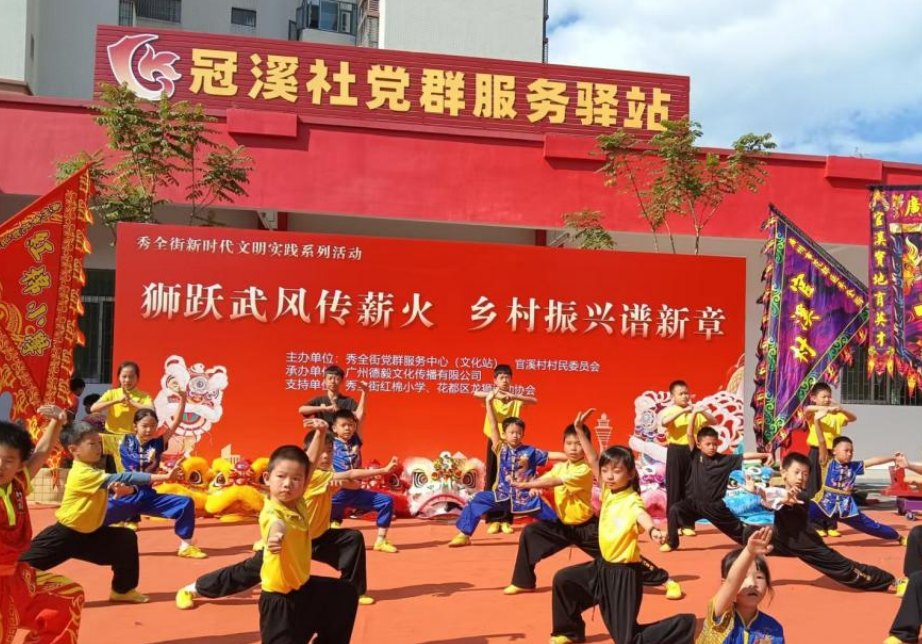 11月23日,由广州市花都区秀全街文化站主办、官溪村承办的以“狮跃武风传薪火 乡村振兴谱新章”为主题的新时代文明实践活动暨醒狮武术展演在冠溪社党群服务驿站举行。