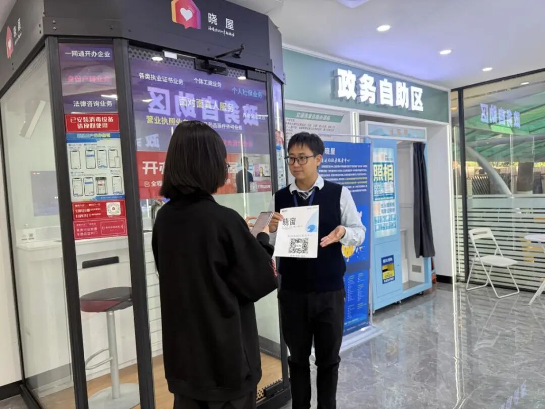 为确保“政务晓窗”高效落地、真正惠民,中心采取多项精准措施:优化导办流程,安排专人主动对接办事需求,针对高频事项引导群众扫码办理,有效分流客流、提升效率;坚持传统与智能服务并行,为老年人等特殊群体保留“一对一”全程协助;利用电子屏循环播放“政务晓窗”二维码,实现“抬头即见、随手可扫”,将服务直接送到群众眼前,提高平台知晓率与使用率。