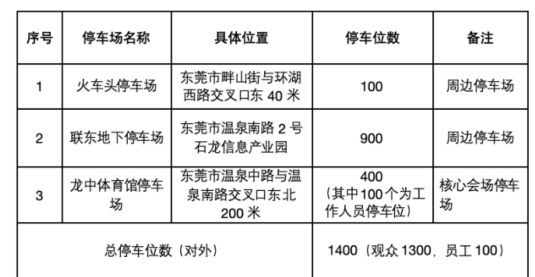 1.免费接驳专线:比赛期间在东莞火车站开通免费接驳专线(中途不停车),观众可乘坐接驳专线直达会场,具体信息如下: