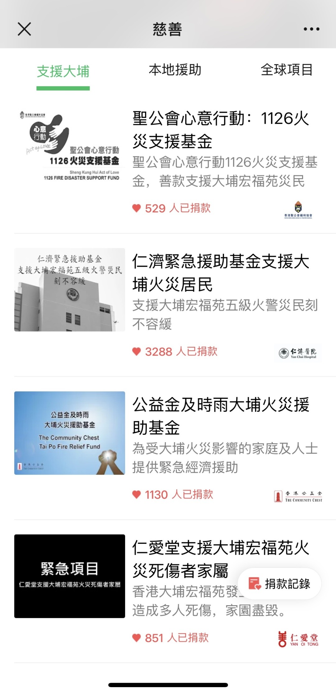 为进一步拓宽捐助渠道,11月27日晚,WeChat港币钱包紧急上线“大埔火灾救援捐款专区”,接入仁爱堂、仁济医院、香港公益金、香港圣公会福利协会等多家慈善机构的专项募捐通道。所有捐款不收取任何行政费用或手续费,善款将全额转交至对应机构。