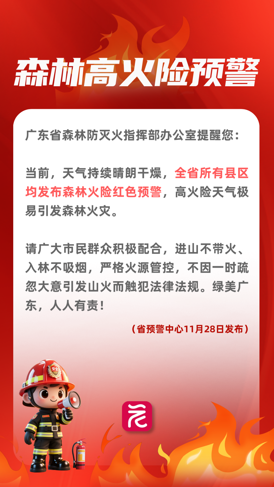 全省所有县区均发布森林火险红色预警
