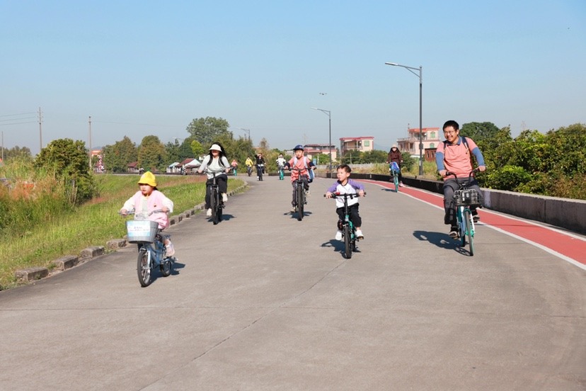 随着发令声响,100名参与者骑车从绿村展馆出发,沿“绿村展馆-绿村村-子沙村-绿村展馆”路线骑行。全程2个打卡补给点提供甘蔗、香蕉等特色本地水果,专业团队全程护航,参与者恪守安全规范,在冬日暖阳中感受榄核镇生态之美。骑行路线串联起乡村风貌与产业节点,既展现“生态榄核”的自然底色,也暗藏“活力榄核”的发展密码。