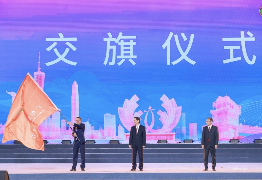 开幕式在清远市清城区举行,以“凤鸣朝阳”为创意核心,分为政务环节与文艺演出两部分。政务环节紧凑高效,清远市相关市领导代表本届主办城市移交广东旅游文化节会旗。随后,广东省人民政府相关领导为下一届举办城市梅州市授旗,梅州市相关市领导接旗,标志着这一省级文旅品牌盛会正式进入“梅州时间”。