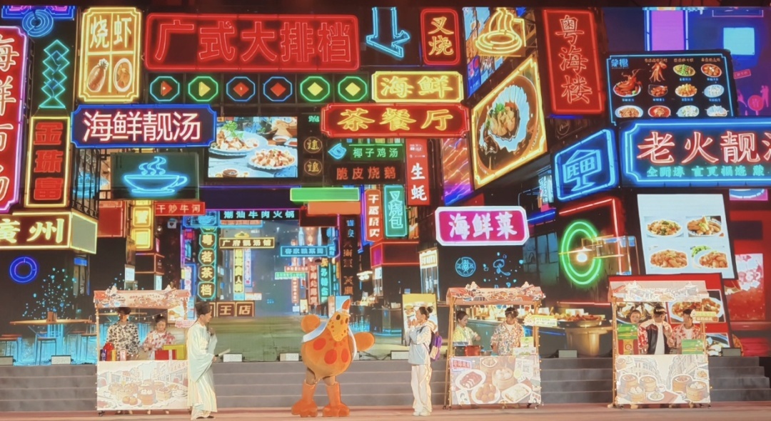 主题文艺演出以“古今交融、全域联动”为核心,通过《凤归清远》开场节目引入,串联“山水有魂”“人间至味”“匠心永恒”“古今共此程”四大篇章,打造沉浸式文旅体验。演出创新融入米芾、苏轼、刘禹锡等历史文化符号,以米芾用北江清泉研墨绘就《北江烟雨图》、苏轼品鉴清远鸡畅谈岭南风味、刘禹锡细赏瑶绣感悟匠心传承的情景,演绎古今人物跨时空对话,生动诠释清远山水之美与人文之韵。演出节目形式丰富多元,《墨染天地间》以舞蹈演绎笔墨意境,《岭南绣梦》展现瑶绣技艺的精湛灵动,《追溯英歌梦》呈现“中华战舞”的刚劲豪迈,更有Rapper演绎《吉弟说》、童声唱响《山的歌》等创新表达,传统艺术与现代潮流碰撞出别样火花。演出尾声,《我们都是湾区人》旋律响起,全场欢腾,传递出粤港澳大湾区文旅共融的热切期盼,完美诠释“以文塑旅、以旅彰文”的发展理念。