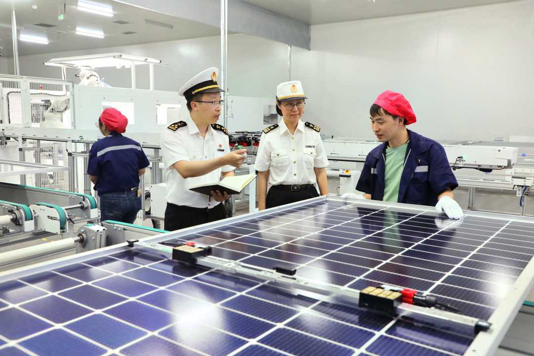广州海关所属花都海关关员对出口太阳能电池开展监管
