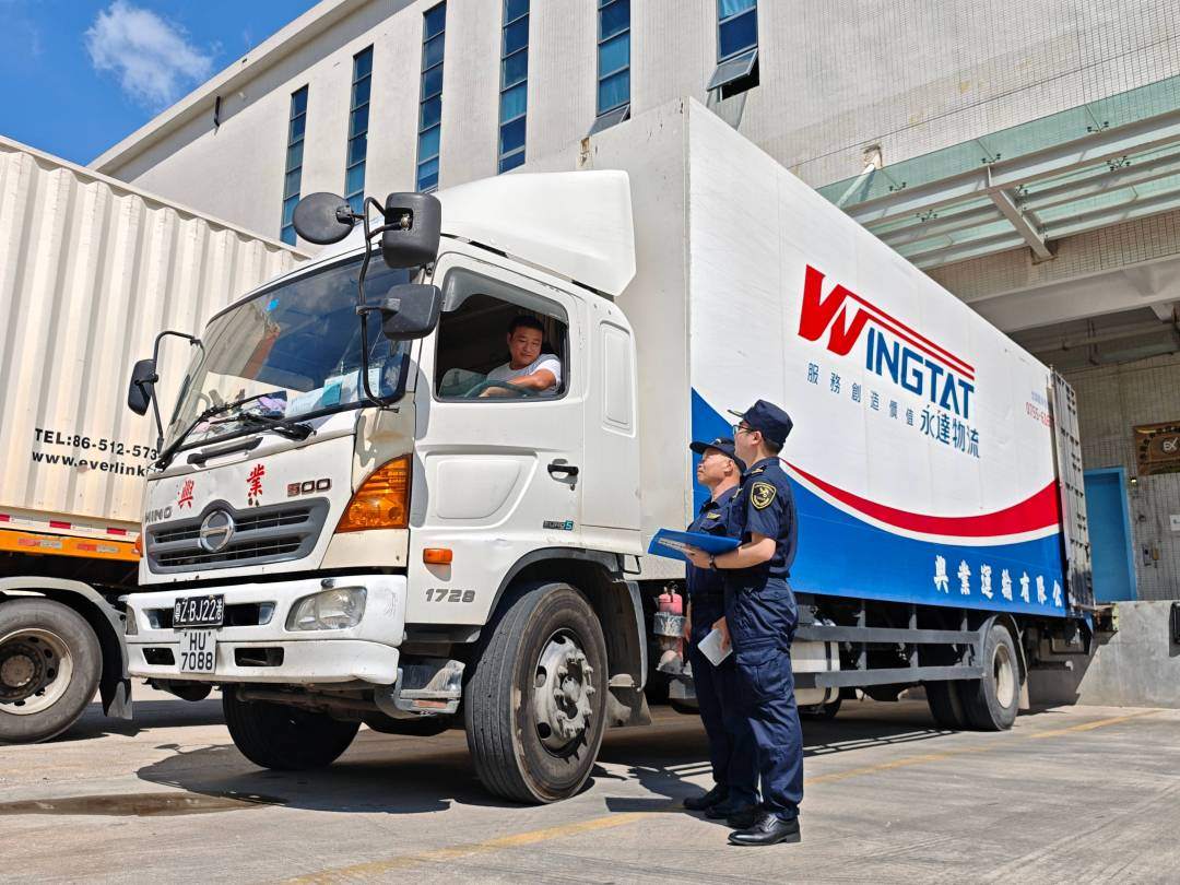 黄埔海关所属凤岗海关关员在清溪保税物流中心核实车辆相关信息