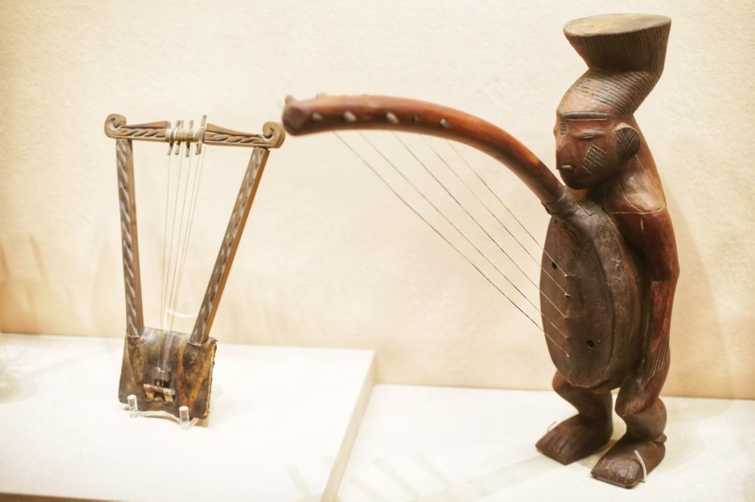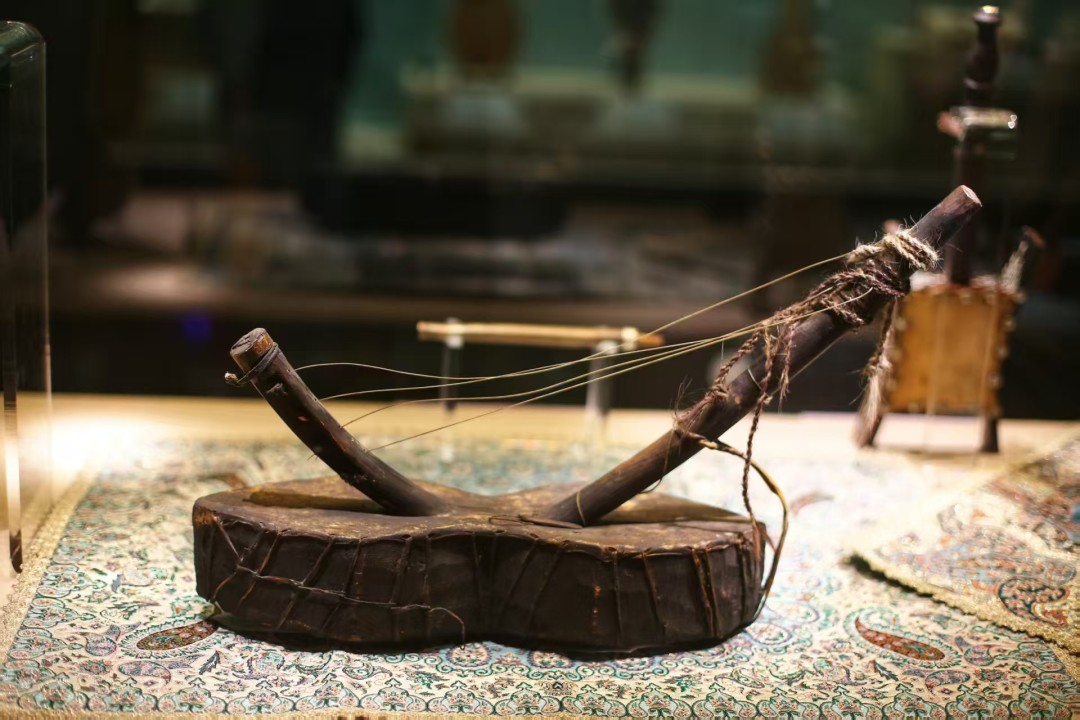 “丝乐风飘处处闻——多元音乐文化展”以五大单元系统呈现世界音乐文明的多样风貌。“旷野呼唤”单元聚焦撒哈拉以南非洲,通过非洲鼓、拇指琴等乐器展现音乐在社会生活中的原生力量;“帐幔乐舞”单元以弹布尔、艾捷克等代表性乐器勾勒西亚、北非至中亚的音乐图景;“山海灵音”单元带领观众走进南亚与东南亚的音乐世界,展现印度古典音乐的拉格体系及东南亚音乐的和谐共鸣;“东方音韵”单元系统梳理东方音乐的文化脉络,通过古琴、阮咸、笙等文物展现中国传统音乐体系的完备性;“四域千籁”单元则聚焦中国境内的音乐多样性,通过马头琴、铜鼓、高胡等特色乐器展现中华音乐“和而不同”的多元一体格局。