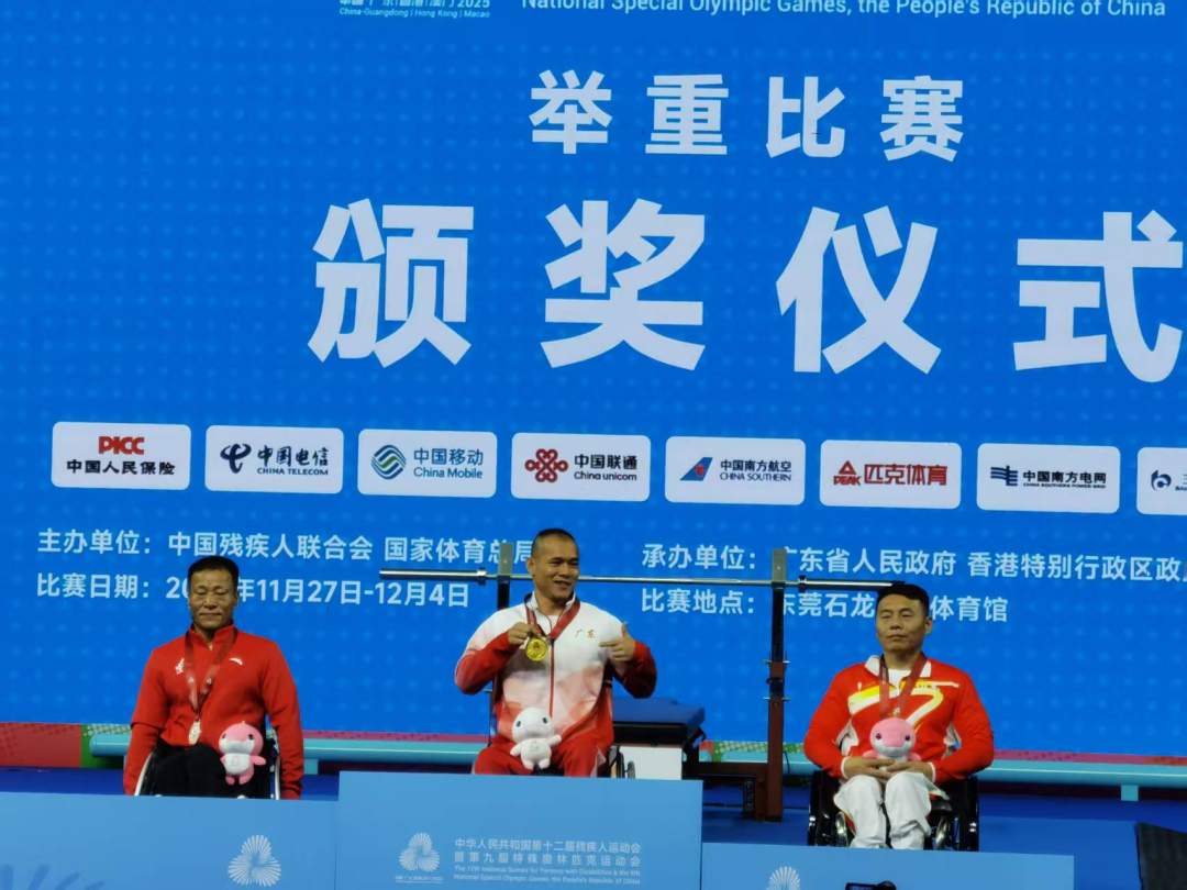 11月下午,残特奥会举重比赛迎来首场男子决赛。经过激烈的角逐,辽宁选手郑玉摘得总重量金牌和最佳重量银牌,广东选手陈柳巽夺得最佳重量金牌和总重量银牌。