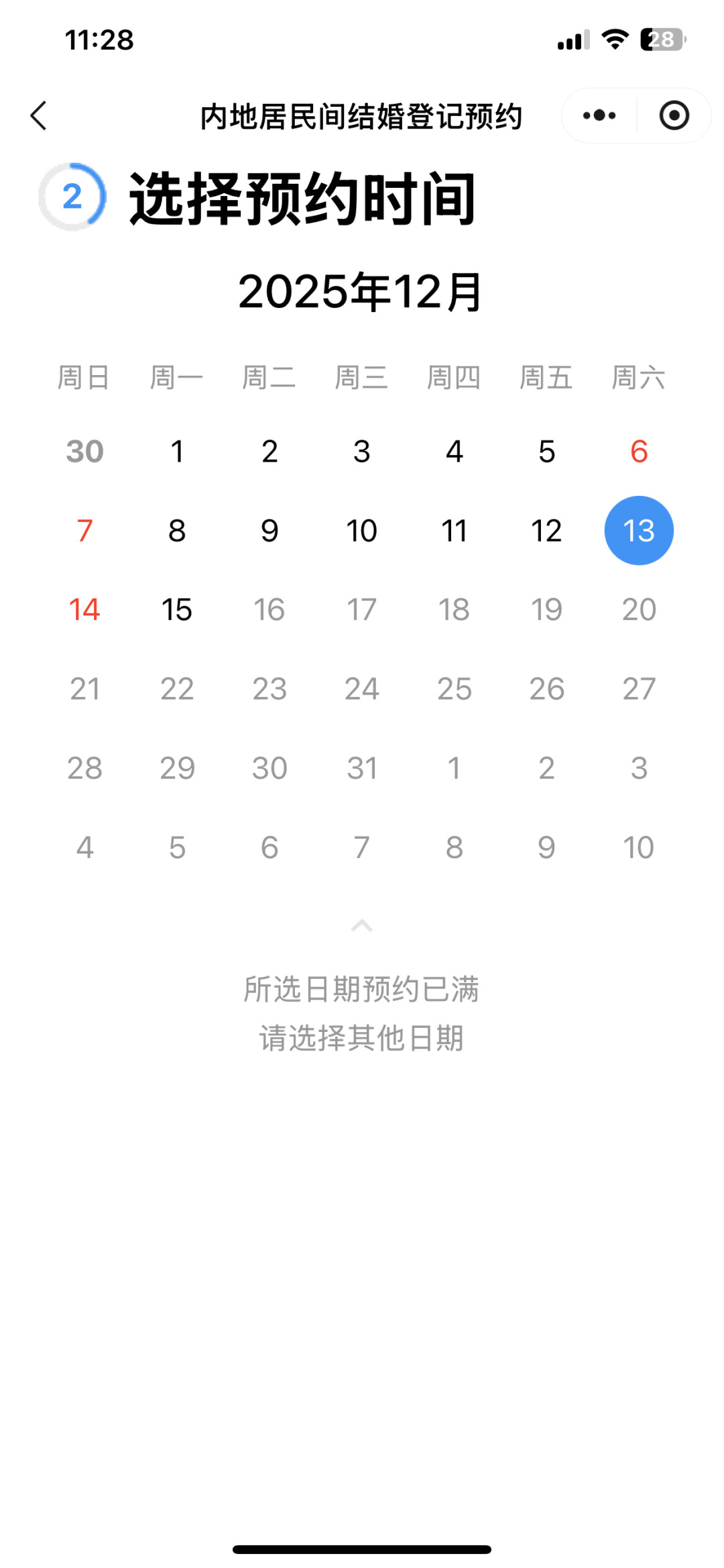 无独有偶,张先生也计划12月初与女友领证结婚,早有计划的他预计到年底是传统结婚旺季,因此需要提早为预约登记做好准备。“我提早半个月就守着民政部门的婚姻登记网站,一看到我中意的日子放号了,我就立即预约。”张先生分享抢号心得,早上8点就要调好闹钟准时蹲守,由于预约成功一般都是全天有效,所以一放号就抢。他很幸运能成功预约到中意的好日子,他也发现好日子因为是周末时间,所以没过多久也显示“预约已满”。