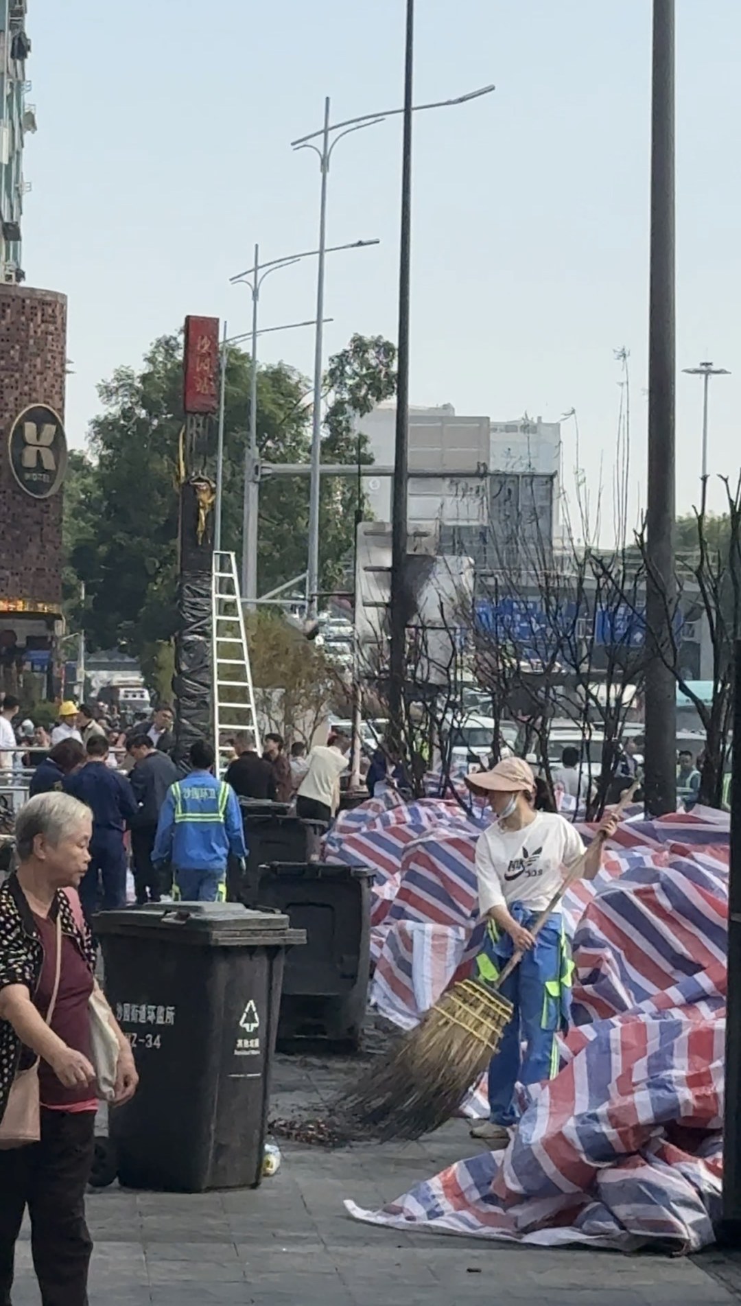12月1日下午,广州市海珠区工业大道沙园地铁站附近路段发生火情。下午15:00,记者赶到沙园地铁口发现c口被封闭。记者走访时,有几辆消防车在路边停放。现场交通较为堵塞。一辆烧得只剩骨架的小轿车被拖走。