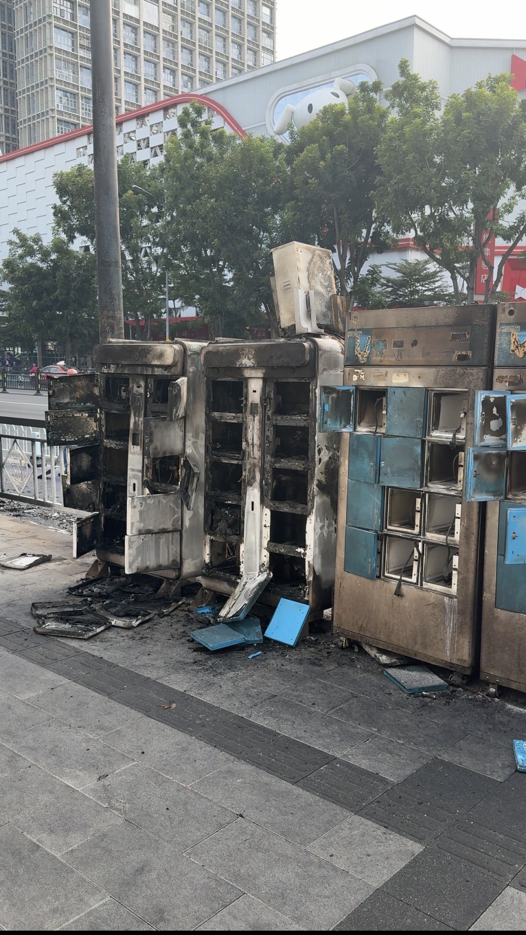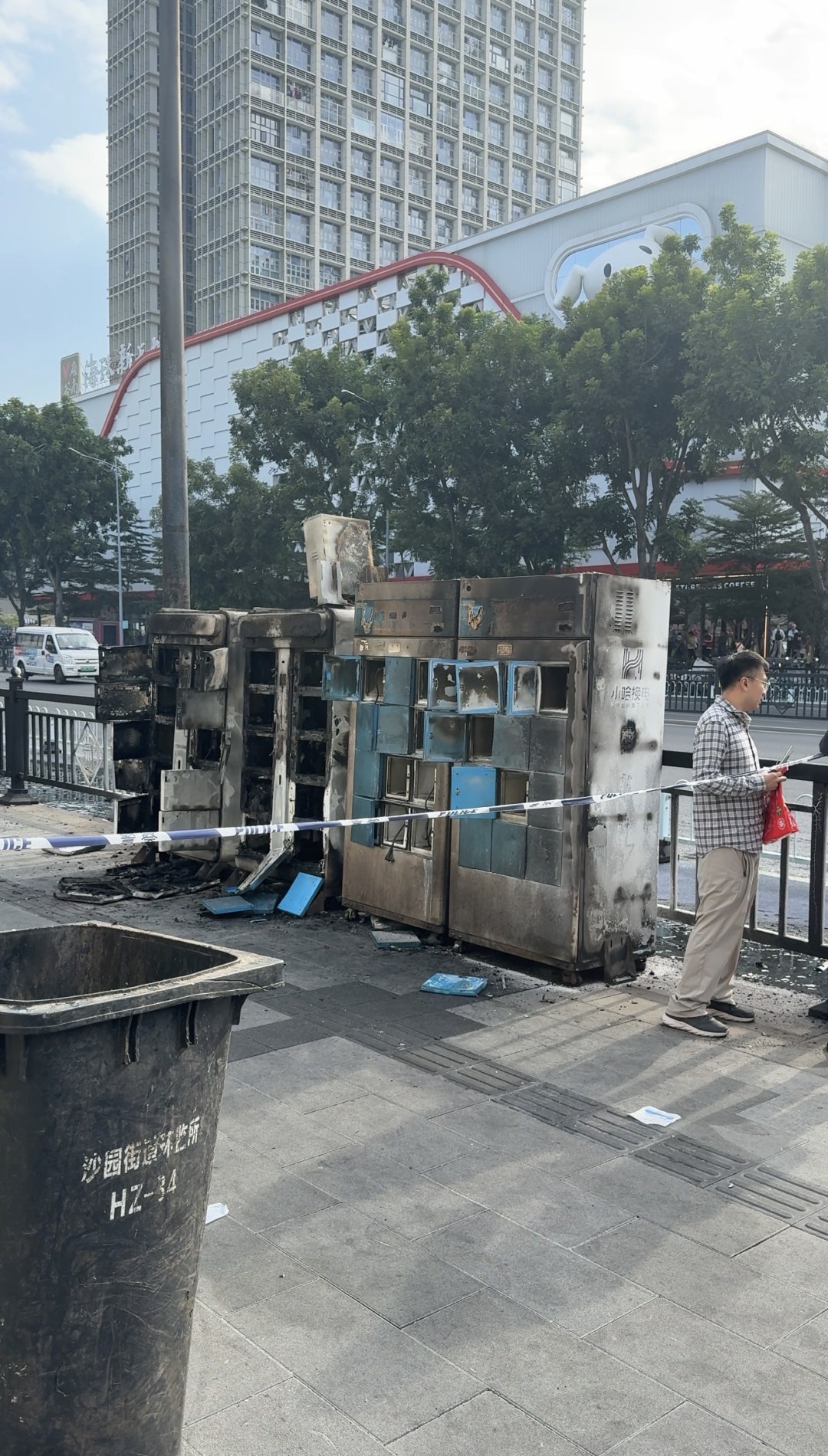 哈啰换电箱被烧毁