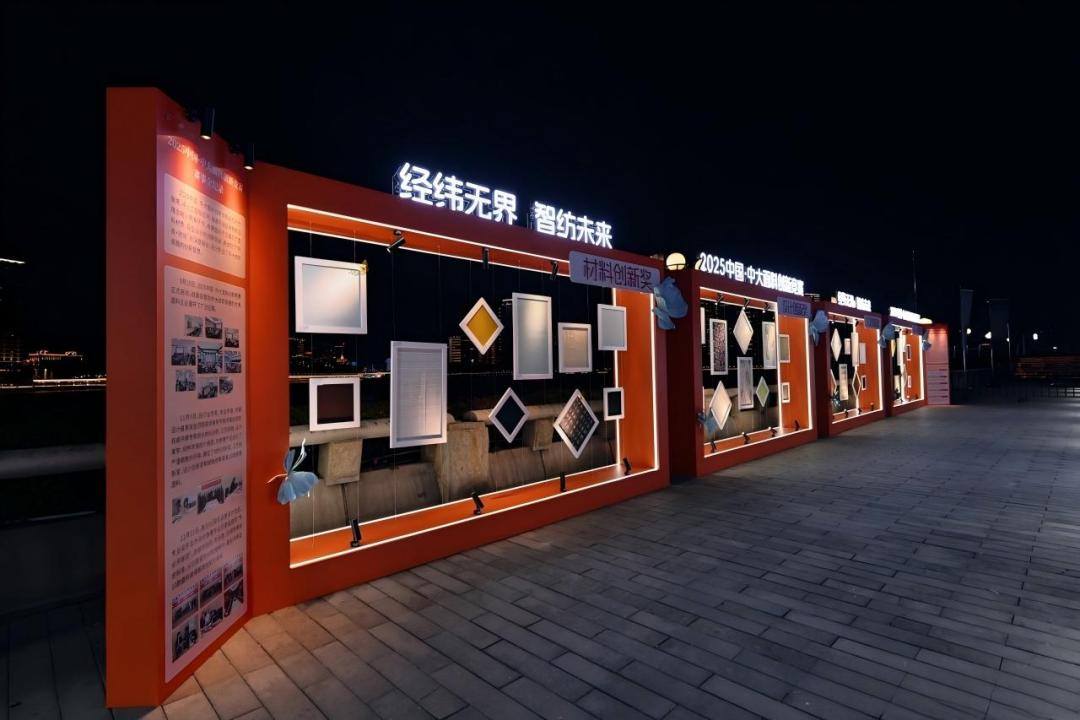 为充分展示面料特性,让观众更直观感受面料的创新魅力,颁奖仪式的同期还设置了静态艺术展专区,通过沉浸式展陈设计将获奖面料转化为可视化的艺术作品,成为全场焦点之一,吸引了众多嘉宾、专业观众驻足鉴赏、拍照交流。