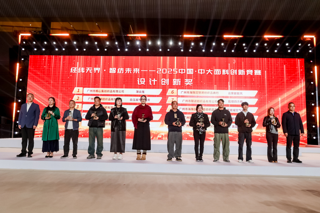 11月29日,由中国纺织工业联合会、广州市海珠区人民政府指导,中国纺织工业企业管理协会、广州市海珠区中大国际创新生态谷纺织产业联合会联合主办的2025中国·中大面料创新竞赛颁奖仪式举行。本次竞赛以“经纬无界・智纺未来”为主题,不仅是对中大纺织商圈年度面料创新成果的一次集中检阅,更是广州海珠区锚定“人工智能+现代纺织”战略定位,推动中大纺织商圈从传统“集散地”向科创“策源地”跨越的重要里程碑。