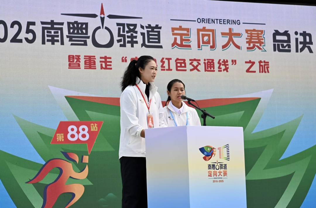 “走在古道上,我感觉在和历史对话,每一步都能感受到先辈们的足迹,让赛道上的奔跑多了一份精神重量,时刻提醒着我们要珍惜现在的生活。”韦愫怡告诉记者,“体育+历史+旅游文化”融合是一种激励,参赛者既能感受到南粤古驿道的文化积淀,又体会到红色基因的力量,让比赛超越了竞技体育的层面,成为一场致敬初心的旅程。对年轻的参赛选手,韦愫怡表示定向运动是“脑力+体力”的双重考验,既要跑得快,更要判得准,希望大家珍惜每一次赛道体验——就像赛道既有坦途也有陡坡,比赛中难免遇到路线误判和体能瓶颈,但这些都是成长的必经之路,保持冷静、快速调整,就是定向运动的魅力。