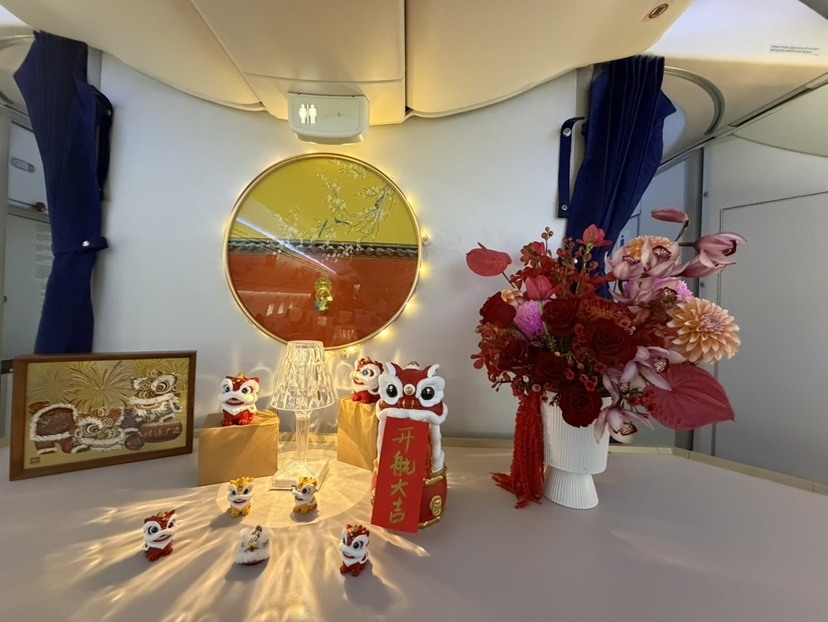 首航前,南航飞行机组在跨域协调、气象应对与精准管控上进行充分准备,以对飞行标准和安全操作的绝对专注保障本次航班。客舱装饰以“红韵岭南、丝路相连”为主题,通过展示醒狮、粤剧等岭南传统文化的同时,还传递了中国与西班牙文化交融与友好建交的美好寓意。