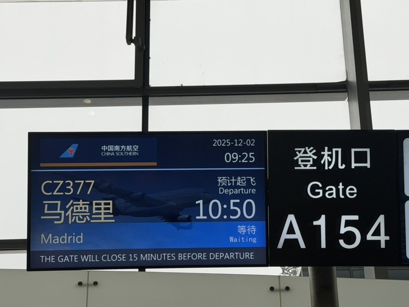 12月2日上午,中国南方航空广州至马德里直飞航线正式开通。这是广州地区首条连接伊比利亚半岛的直飞航线,填补了两地直航空白。
