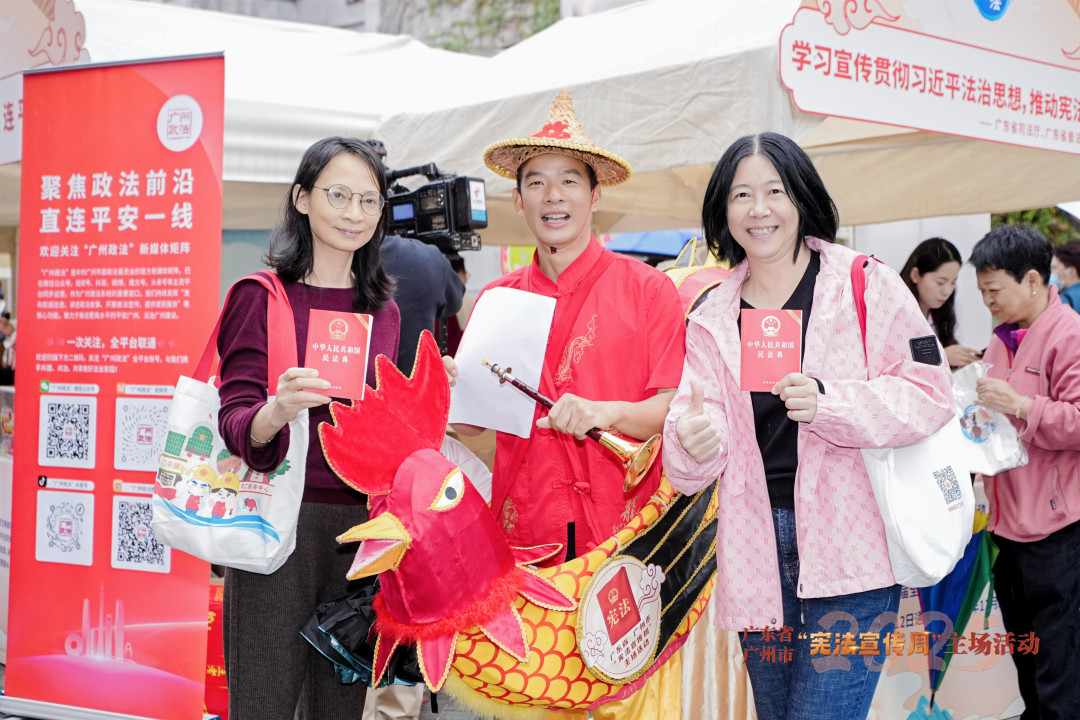 12月2日,在第十二个国家宪法日即将到来之际,根据中央宣传部、司法部、全国普法办的部署,结合广东实际,广东省司法厅、广东省普法办联合省落实普法责任制厅际联席会议成员单位,广州市司法局、广州市直普法责任单位,国家驻粤、驻穗机构,企业代表、法律工作者以及各类社会力量等在广州永庆坊法治文化街区开展2025年广东省“宪法宣传周”主题主场活动。