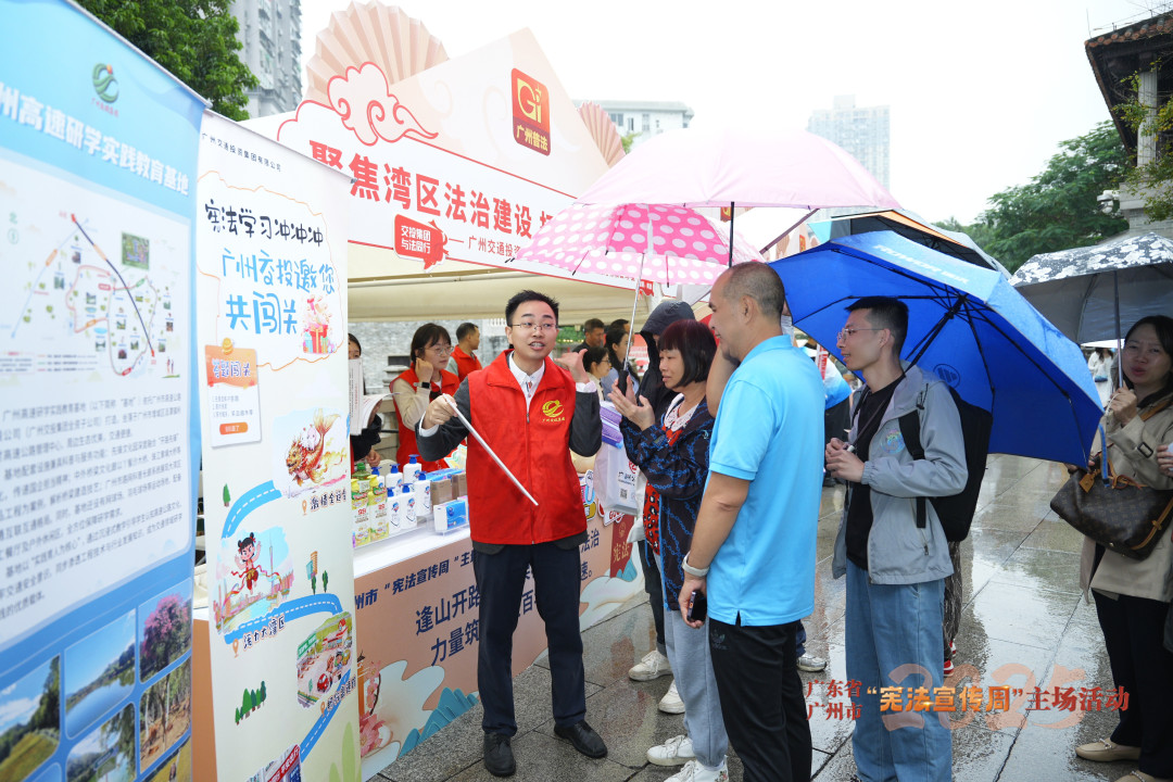 在永庆坊金声广场至粤剧艺术博物馆的沿线区域,50余家省、市普法责任单位以“一单位一展台”形式设置普法宣传展位,集中展示各行业法治建设成果,通过趣味互动、图文解读、普法文创派发等方式,向群众宣传宪法及民生保障、营商环境优化等相关法律法规和政策措施,增强普法的针对性和实效性。