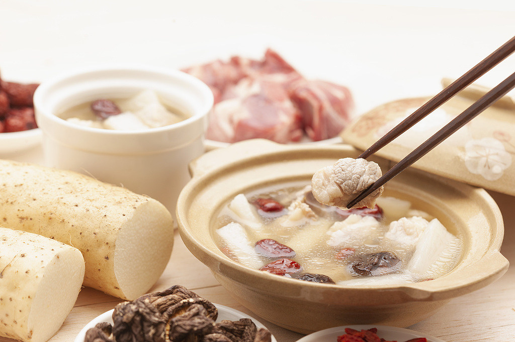 材料:石斛30克、鲜山药500克、百合30克、北杏30克、排骨500克。