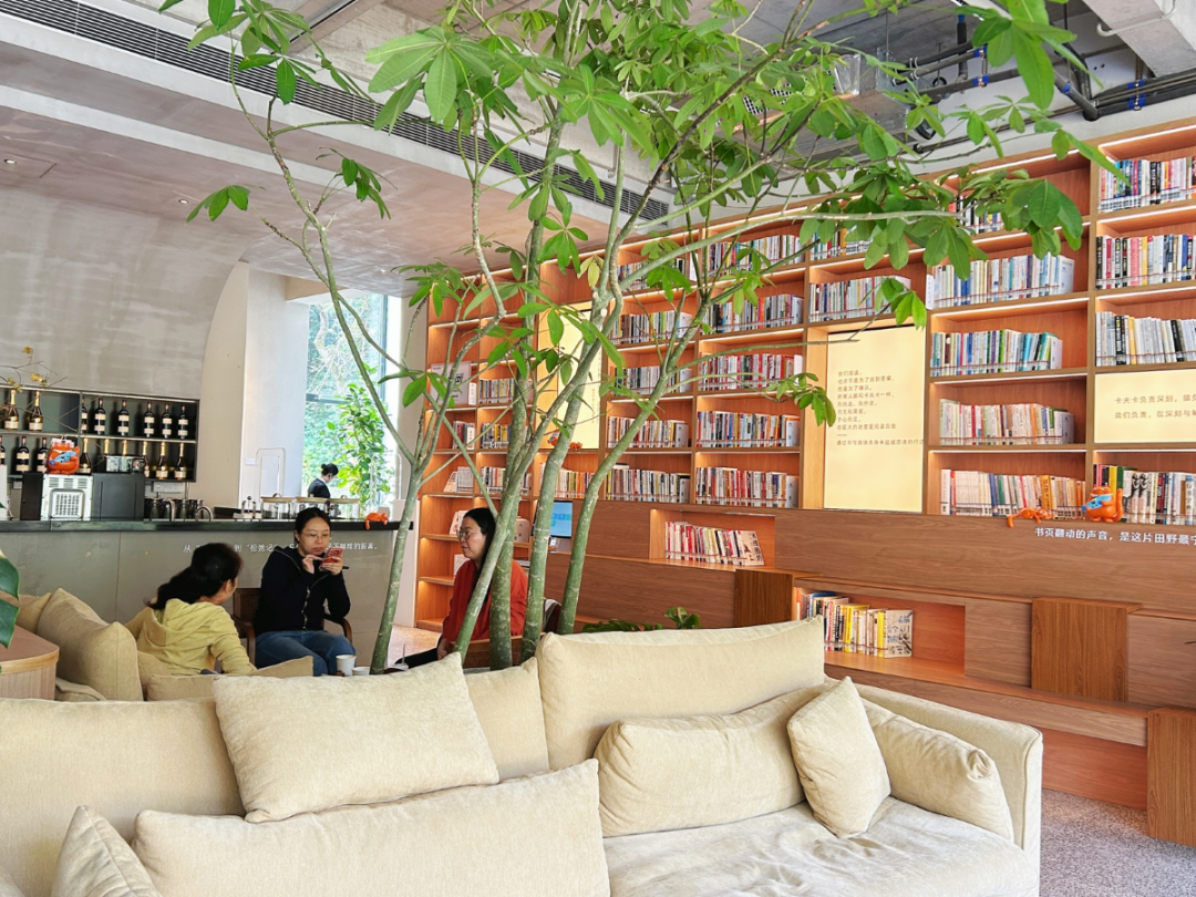 据介绍,猫卡夫迳下在地文化美术馆不仅是一家美术馆,还是广州美术学院、迳下文旅品牌研究社会实践教学基地、女大学生创业实践和就业实习基地、黄埔区图书馆、黄埔区文化馆迳下分馆。作为黄埔区首个以文学艺术跨界融合为主题的乡村图书馆,这里可以逛展看书,可以就餐喝咖啡,为市民游客打造了一处兼具人文温度与美学价值的文化栖息地。