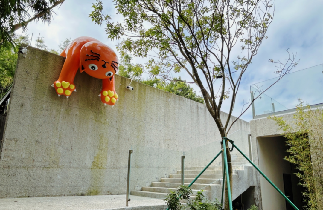 美术馆坐落于黄埔区迳下村自然生态与田园风光交织的区域,采用现代简约的“盒子”设计,以“猫的慵懒与灵动”为空间主线,结合卡夫卡作品中的存在主义意象,通过书墙、光影装置、绿植庭院等元素,构建出既具私密感又充满探索趣味的阅读场景。走进美术馆,长在屋顶的猫咪十分可爱,随处可见的可爱喵星人文创周边氛围感十足。