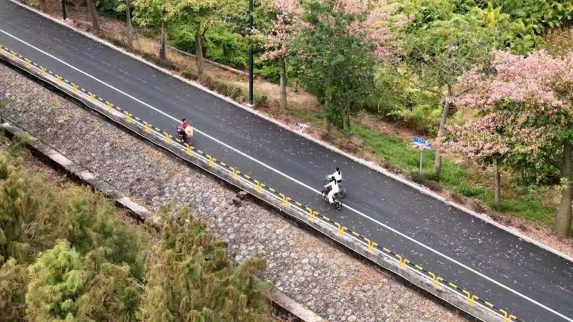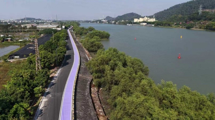 更令人惊喜的是,建设者们依据紫坭岛的地势风貌与文化特色,打造了四大主题路段——穿行于红树林保护区旁,可见水鸟翩跹;途经鳌山古庙周边,能赏古建韵味;靠近紫泥堂路段,工业风与文艺范交融;漫步宝墨园附近,岭南园林景致扑面而来。一步一景的设计,让这条路本身就成为“打卡点”,不少游客特意沿着漫步道骑行、散步,沉浸式感受水乡的灵动与惬意。