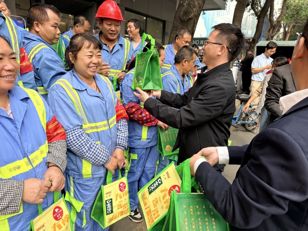 作为本次公益行的核心环节,白云山和黄中药向坚守岗位的一线工作者环卫工人、外卖骑手捐赠了内含白云山板蓝根颗粒、白云山橘红痰咳煎膏等防护用品的健康礼包。这批物资旨在帮助他们在流感高发季节增强自我防护能力,传递企业对广大劳动者的关怀与问候。此外,现场还设置了白云山板蓝根试饮活动。