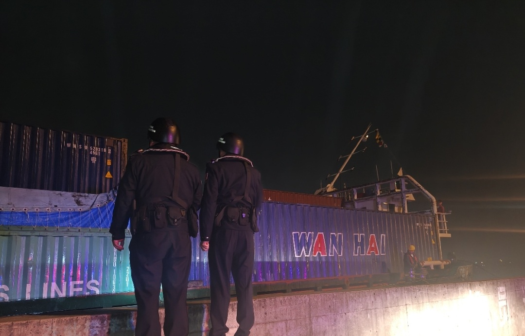12月2日,番禺出入境边防检查站执勤一队民警在莲花山货运码头,于夜雨中迅速开通“绿色通道”,为一名眼睛受伤的船员优先办理入境手续,保障其得到及时救治。
