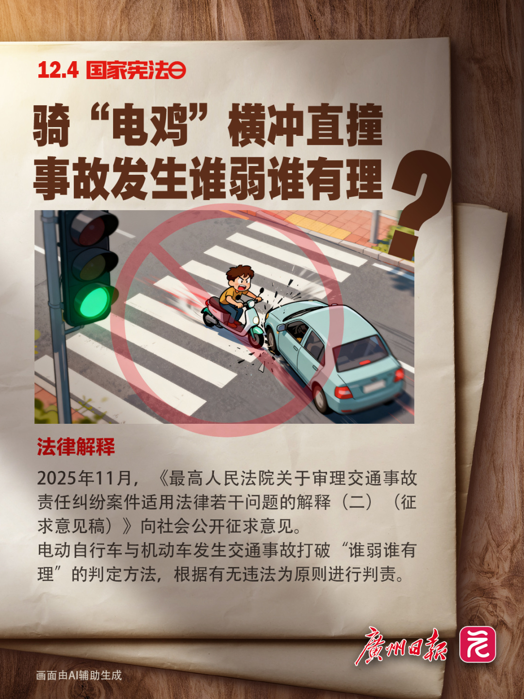 电动自行车与机动车发生交通事故打破“谁弱谁有理”的判定方法,根据有无违法为原则进行判责。